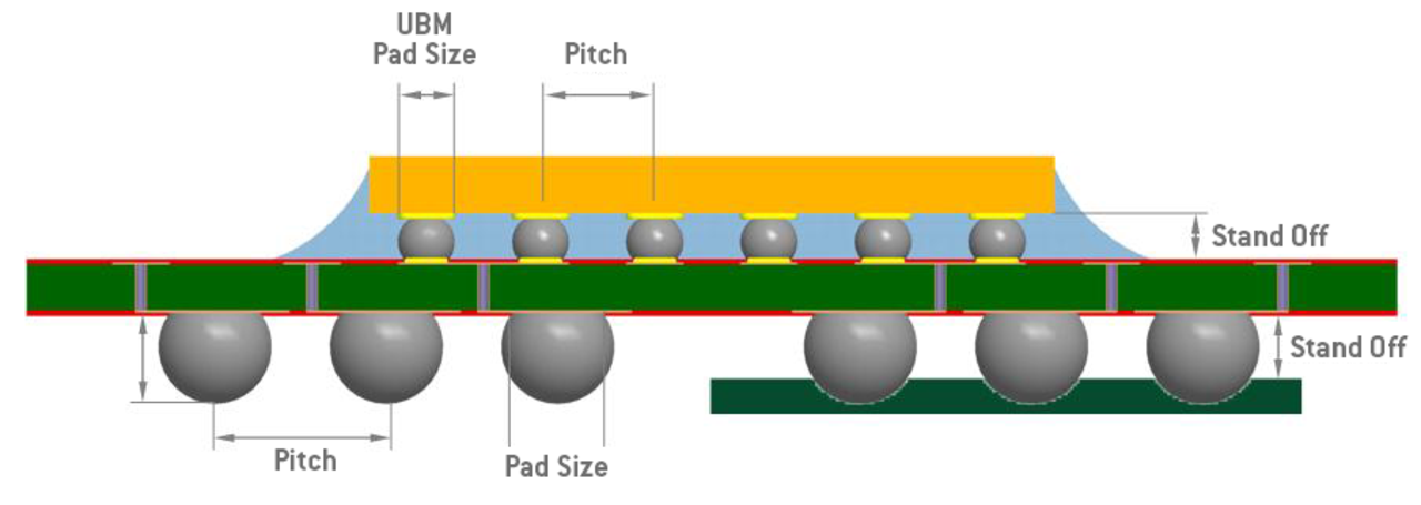 Speziell für Hochfrequenzanwendungen sind kürzeste Leitungswege von enormer Bedeutung. Die Flip Chip Methode bietet den Vorteil von höchster Packungsdichte bei geringem Platzbedarf.